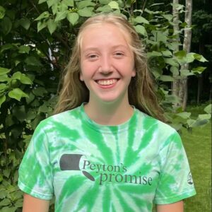 Hi my name is Reece, I am a junior at the DC Everest high school, and this is my second year on the Peyton’s Promise leadership board. I’ve been a part of Peyton’s Promise for 6 years. I love running long distance, and playing soccer. I am in Boy Scouts, Gaming Club, and DECA. I play two instruments, the piano and the trumpet. I can’t wait for this new year of Peyton’s Promise.