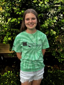 Hi, my name is Carley, this is my second year on the leadership board, but I’ve been a part of Peyton’s promise for 8 years now! I joined to support my community and my favorite memory is seeing the look on people’s faces when they come and get food from the pantry in the winter. Outside of Peyton’s Promise I am an avid reader, play tennis and am an Eagle Scout!